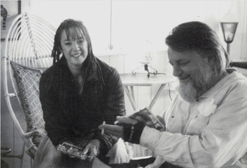 La musica eterea, impalpabile eppure così presente, esattamente ciò che è lui in carne ed ossa: leggero e presente. Siamo in sette. Io, Gigliola (costumista), Silvia (truccatrice), Elena (Mescal) Roberta (produzione), Francesco e Carlo (registi). Francesco Di Loreto e Carlo Bevilacqua (i due registi) conoscono molto bene Wyatt. Sono loro che hanno girato "Little Red Robin Hood", un meraviglioso documentario del 1998 a lui dedicato, quindi sanno anche che a Robert non piace molto essere ripreso. Io spero solo che la nostra presenza non risulti troppo pesante per un'entità così fragile. Ci rechiamo alla "dimora del mare", quella dove vanno Alfie e Robert di tanto in tanto, alternando un piccolo paesino tranquillo come Louth alla meravigliosa atmosfera marittima, per certi versi più elettrica. Abbiamo passato un giorno intero da loro senza mai sentirci a disagio, anche se quel giorno ero quasi tentata di trattenere il respiro per non disturbare. Lì abbiamo girato parte del video. È un'atmosfera davvero fiabesca. Siamo in una casetta di legno, nera fuori, coloratissima dentro; c'è un giardino tutt'intorno e il suono, solo il suono del mare che si infrange contro scogli che non vediamo. Non si vede il mare, perché il terreno a un certo punto si alza e fa una piccola montagnetta proprio davanti alla casa. Però si fa sentire, il mare della costa: piano piano si sta mangiando la terra. Una casetta di legno, dicevo, dipinta di nero (forse per trattenere il calore). Dentro bianca e gialla con tanti piccoli oggetti da studiare. " Un giorno sono entrati i ladri" racconta Alfie "ma non hanno portato via nulla. Sono tutte cose di pochissimo valore". Per fortuna la grazia non si misura con il denaro. Robert ama conversare e raccontare, come ama profondamente Alfie e il suo ruolo di madre e amante. Nonostante sia fine giugno fa un gran freddo. "Su questa costa volano uccelli che vengono dalla Russia" mi dice Robert e questo particolare mi fa salire un brivido lungo la schiena. Il raffreddore che a volte mi coglie ci fa interrompere le riprese, ma tra una tisana alla propoli di Alfie e qualche battuta riusciamo ad avere materiale sufficiente per il video.