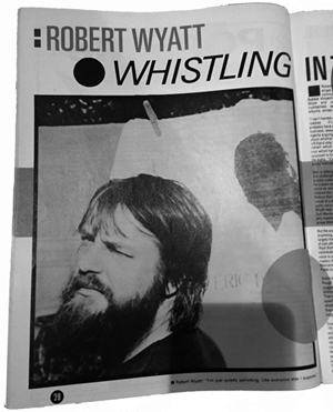 Confined to his wheelchair, Robert Wyatt perhaps has to do a little more whistling than most of us. A typical day is focused around eating and the radio. He used to spend hours listening to distant stations on the short wave band but now listens mainly to programmes like Black London and Robbie Vincent's Soul Show. He has a consuming passion for black American music, all those "endless, uninterviewed studio groups working out great riffs. "